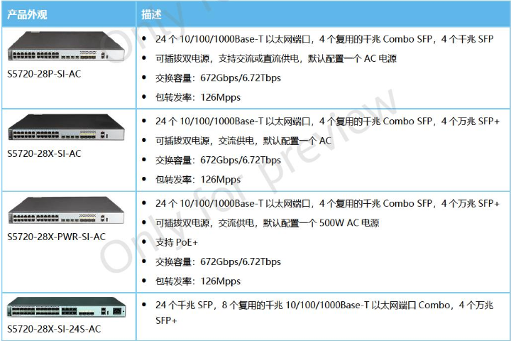 产品名称: 华为 S5720-SI系列标准型千兆以太交换机 S5720-28P-SI-AC S5720-28X-SI-AC S5720-28X-SI-24S-AC S5720-28X-PWR-SI-AC 三层交换机