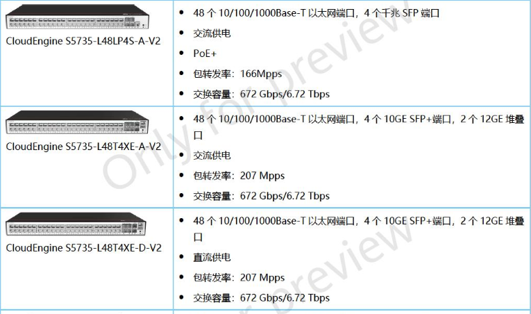 产品名称: 华为 CloudEngine S5735-L-V2系列交换机 S5735-L48LP4S-A-V2 S5735-L48T4XE-A-V2 S5735-L48T4XE-D-V2