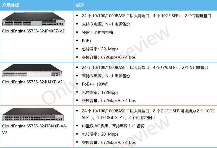 产品名称: 华为 CloudEngine S5735-S-V2系列交换机 S5735-S24P4XEZ-V2 S5735-S24U4XE-V2 S5735-S24T8J4XE-XA-V2