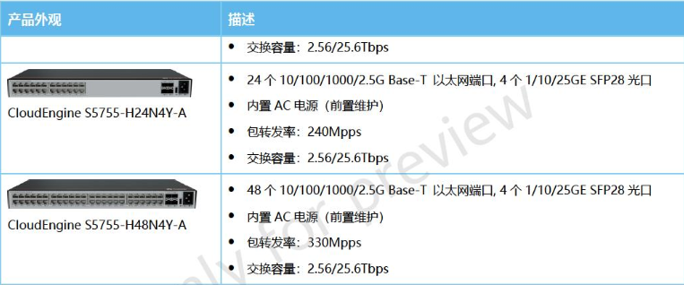 产品名称: 华为 CloudEngine S5755-H系列高品质2.5GE交换机 S5755-H24N4Y-A S5755-H48N4Y-A 4个25G,2个100G核心交换机