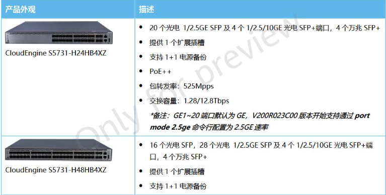 产品名称: 华为 CloudEngine S5731-H系列光电混合交换机 S5731-H24HB4XZ S5731-H48HB4XZ 千兆万兆核心接入交换机