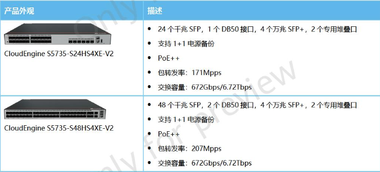 产品名称: 华为 CloudEngine S5735-S-V2系列光电混合交换机 S5735-S24HS4XE-V2 S5735-S48HS4XE-V2 三层核心接入交换机
