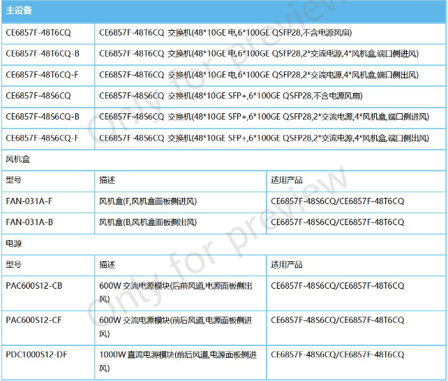 产品名称: 华为CloudEngine 6857F数据中心交换机 CE6857F-48T6CQ CE6857F-48T6CQ-B CE6857F-48T6CQ-F CE6857F-48S6CQ CE6857F-48S6CQ-B CE6857F-48S6CQ-F 核心汇聚交换机