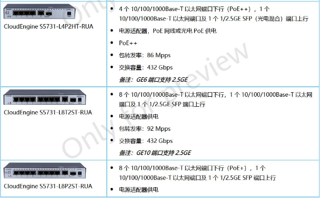 产品名称: 华为 CloudEngine S5731-L系列远端模块交换机 S5731-L4P2HT-RUA S5731-L8T2ST-RUA S5731-L8P2ST-RUA 千兆以太网交换机