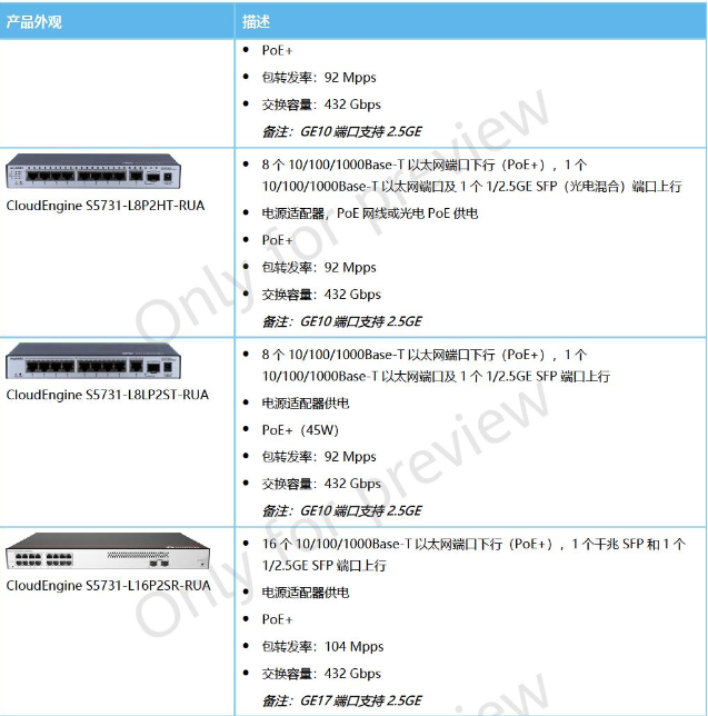 产品名称: 华为 CloudEngine S5731-L系列远端模块交换机 S5731-L8P2HT-RUA S5731-L8LP2ST-RUA S5731-L16P2SR-RUA 千兆以太网交换机