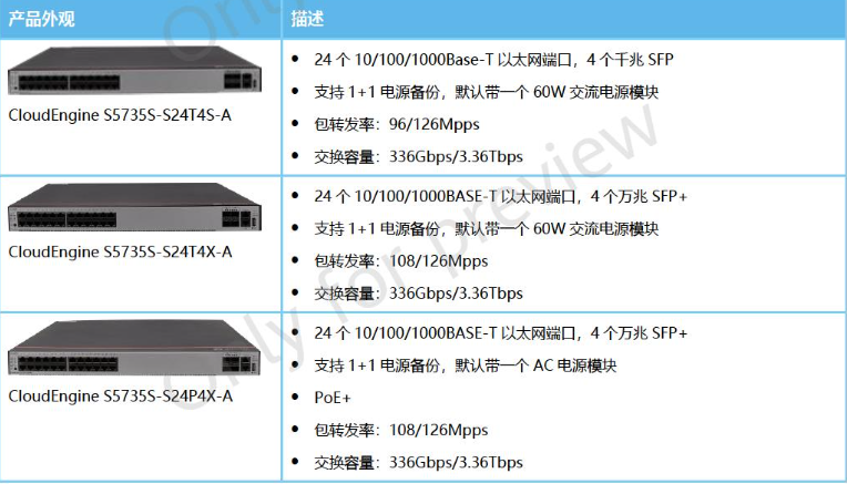 产品简述: 华为 CloudEngine S5735S-S系列交换机 S5735S-S24T4S-A S5735S-S24T4X-A S5735S-S24P4X-A 千兆以太网交换机