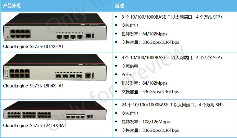 产品名称: 华为 CloudEngine S5735-L-I系列宽温交换机 S5735-L8T4X-IA1 S5735-L8P4X-IA1 S5735-L24T4X-IA1 千兆下行4万兆上行工业级交换机