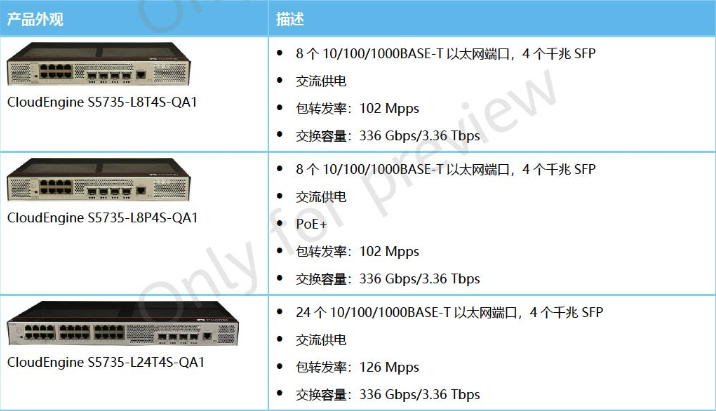 产品名称: 华为 CloudEngine S5735-L-Q系列静音交换机 S5735-L8T4S-QA1 S5735-L8P4S-QA1 S5735-L24T4S-QA1 S5735-L24T4X-QA1 千兆以太网静音交换机