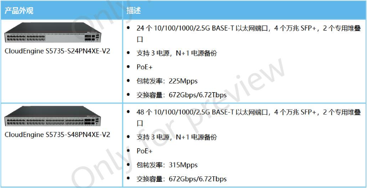产品简述: 华为 CloudEngine S5735-S-V2系列2.5GE交换机 S5735-S24PN4XE-V2 S5735-S48PN4XE-V2 接入汇聚数据交换机