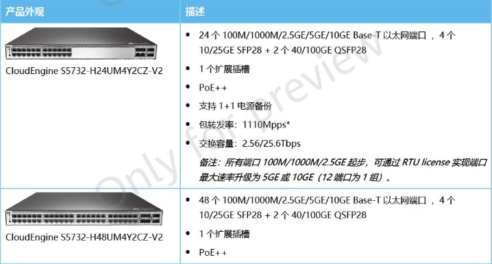 产品名称: 华为CloudEngine S5732-H-V2系列多速率交换机 S5732-H24UM4Y2CZ-V2 S5732-H48UM4Y2CZ-V2 万兆以太网交换机