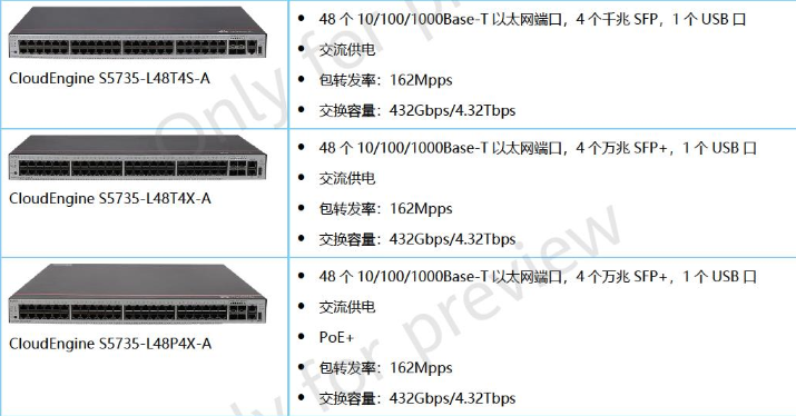 产品名称: 华为 CloudEngine S5735-L系列交换机 S5735-L48T4S-A S5735-L48T4X-A S5735-L48P4X-A 千兆以太网交换机