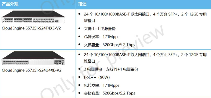 产品名称: 华为 CloudEngine S5735I-S-V2系列宽温交换机 S5735I-S24T4XE-V2 S5735I-S24U4XE-V2 千兆交换机