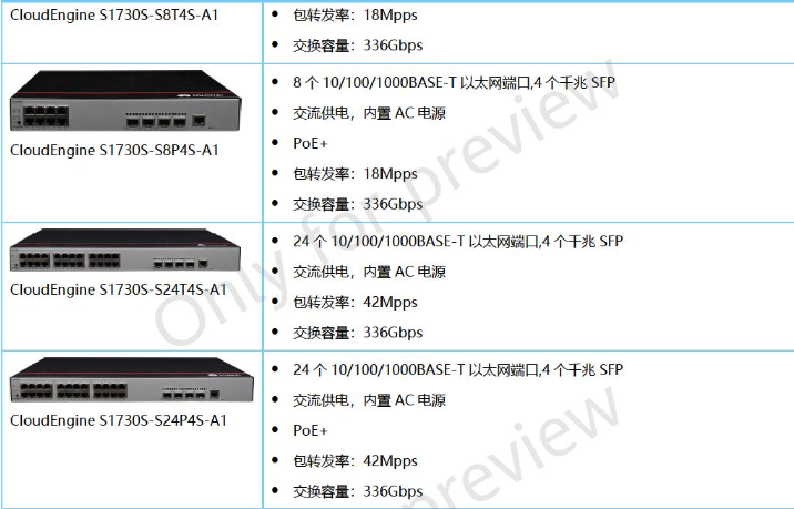 产品名称: 华为 CloudEngine S1730S系列交换机 S1730S-S8T4S-A1 S1730S-S8P4S-A1 S1730S-S24T4S-A1 S1730S-S24P4S-A1 以太网交换机
