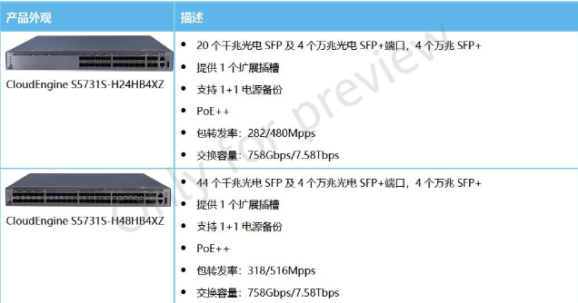 产品名称: 华为 CloudEngine S5731S-H系列光电混合交换机 S5731S-H24HB4XZ S5731S-H48HB4XZ 以太网交换机